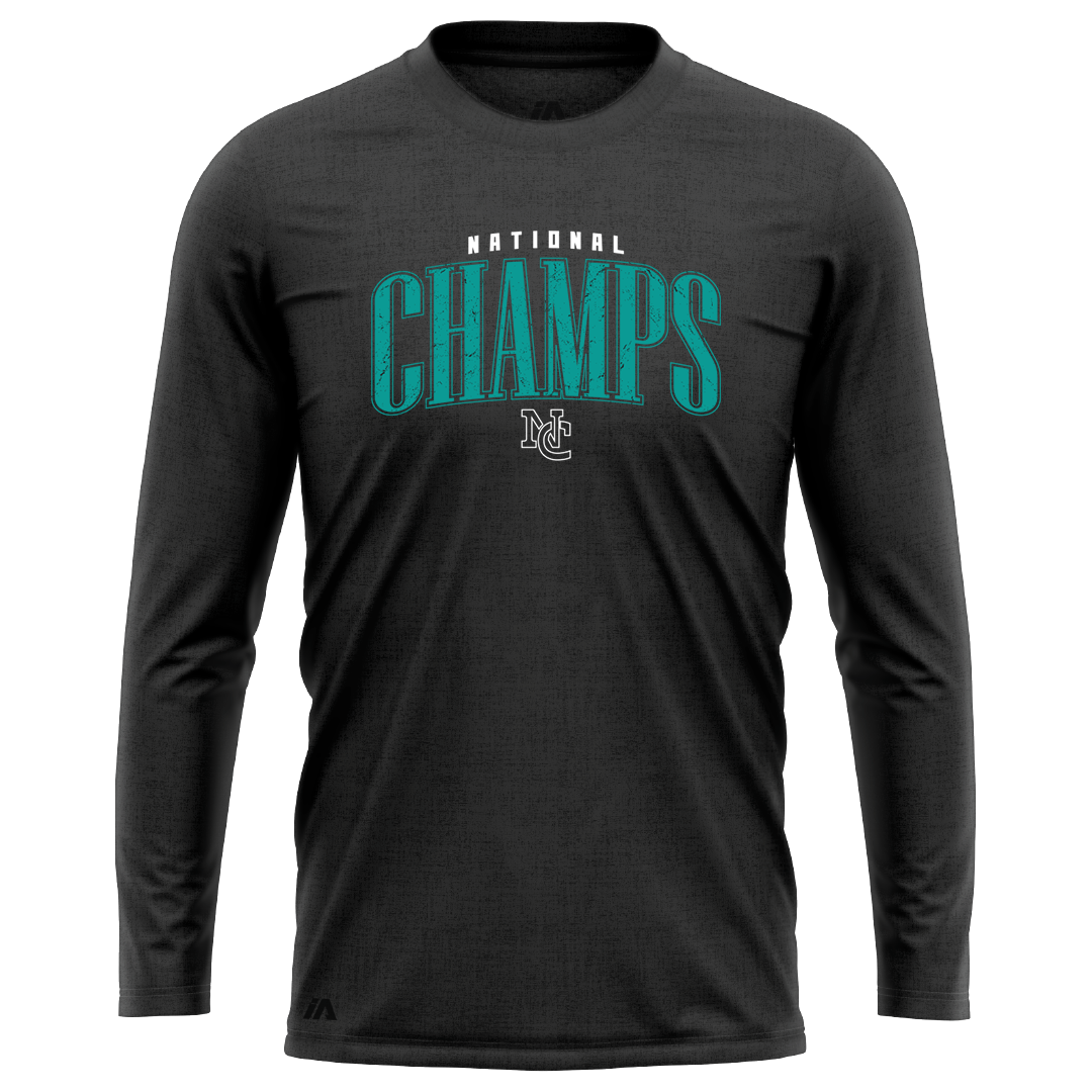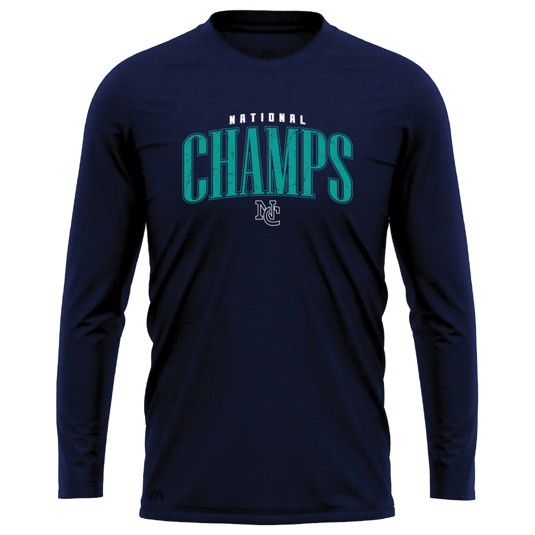 National Champs Cyan Logo Performance LS Tee