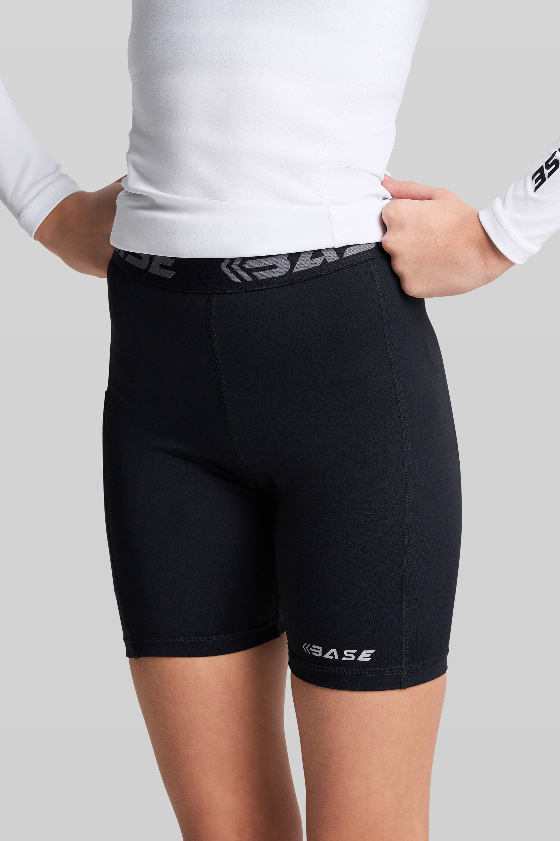 Active compression designed for young female athletes. These sleek black active shorts deliver targeted 15-20 mmHg compression with versatile design that works as standalone shorts or as a comfortable base layer.